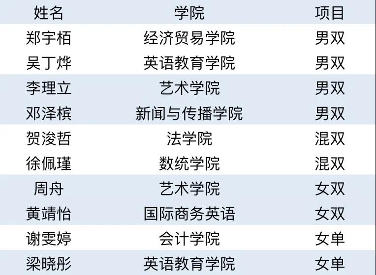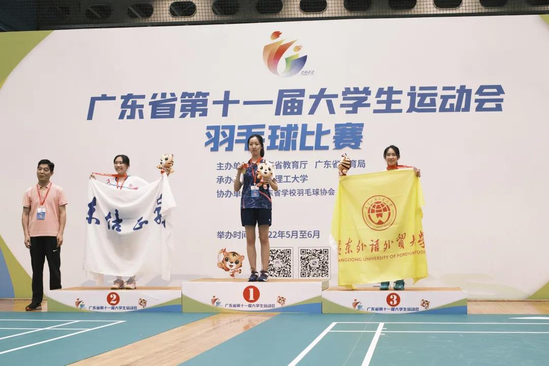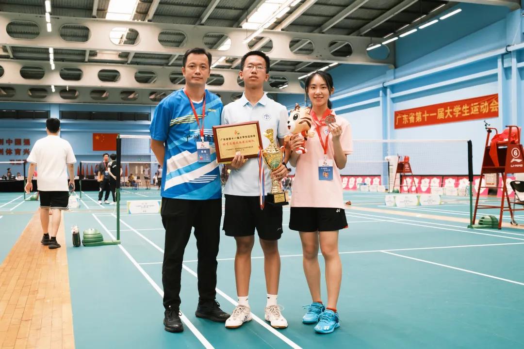 舞动青春,谁“⽻”争锋!2022年广东省第十一届大学生运动会羽毛球比赛于6月3日至6月9日在华南理工大学五山校区隆重举行。伟德国际victor1946羽毛球队由余鹏翼领队、朱健文与朱性民教练员带队,经过3天奋勇拼搏,最终获得甲组团体总分第七的成绩以及“体育道德风尚奖”称号,单项赛取得甲组女子单打季军(梁晓彤)、甲组女子单打第五(谢雯婷)的成绩。