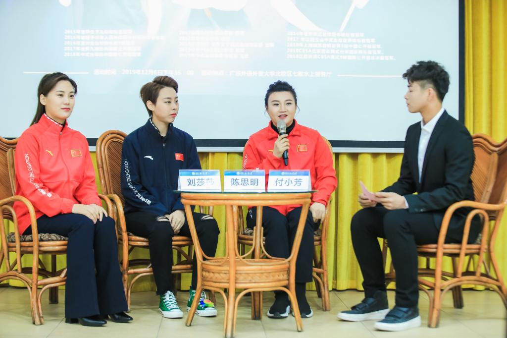 分享及访谈过后,三位冠军与同学们热情互动。同学们感到振奋人心,备受鼓舞,踊跃地提出了很多台球相关问题以及自身所处的状态问题。三位冠军表示广外学生思想活跃,对自身规划非常关注,并一一耐心解答了同学们的问题。她们鼓励同学们坚守初心和梦想,用心、坚持、永不放弃,并要时刻懂得感恩国家、社会以及亲朋好友。互动环节一度掌声不绝,非常火热。