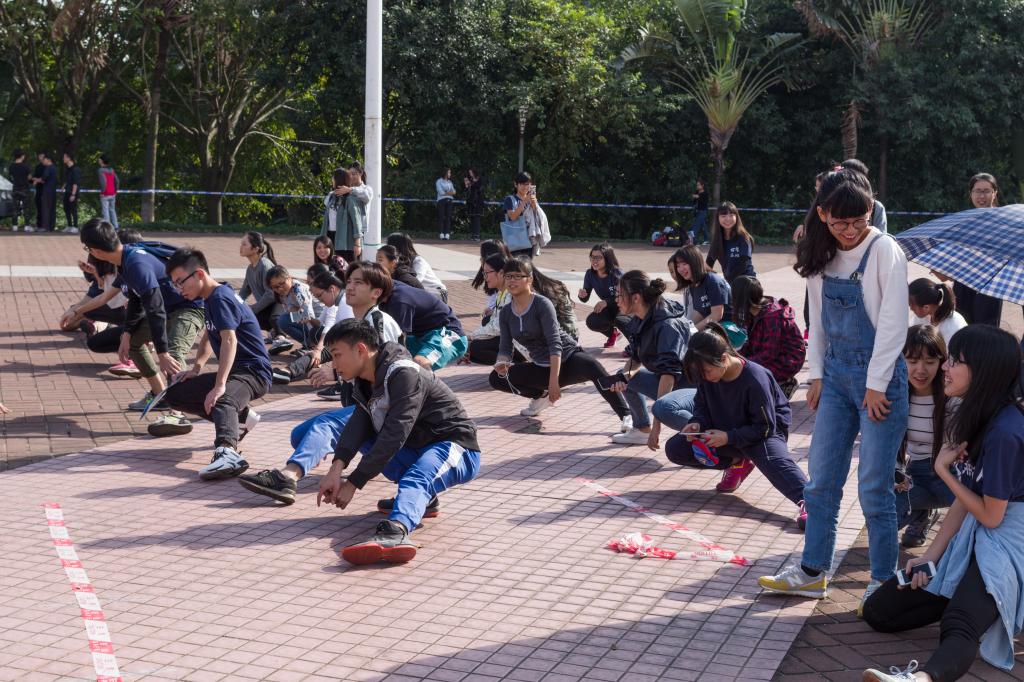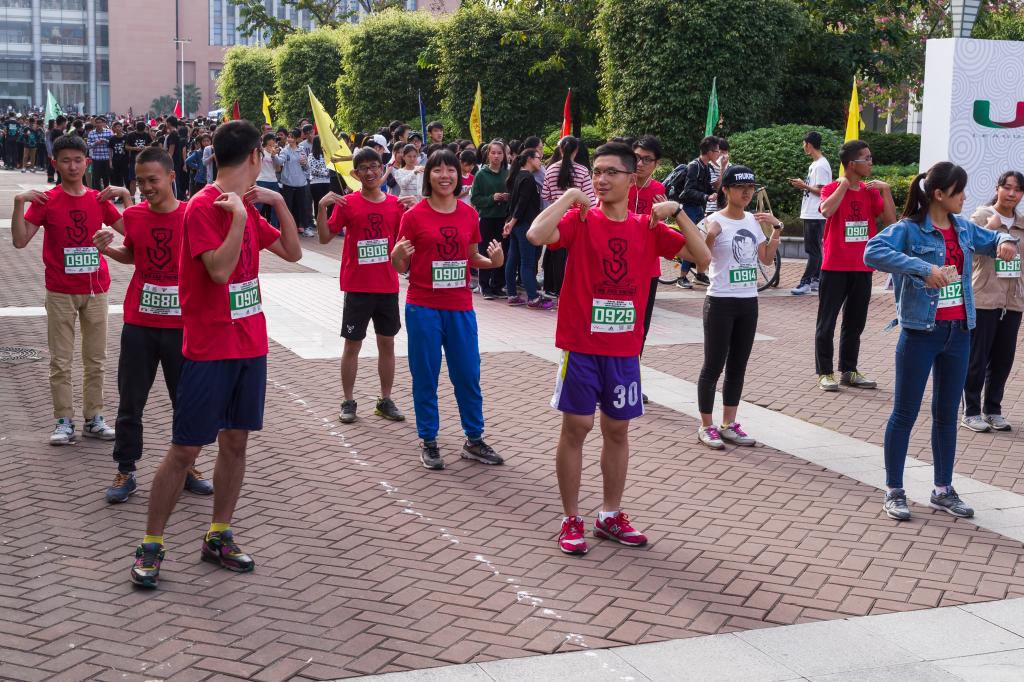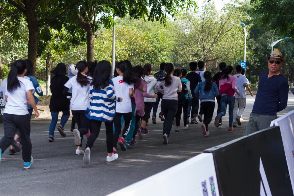 本次比赛共有一百二十五个班近三千五百名同学参加,比赛以班级为单位。在候场区检录后,各班来到了出发区。