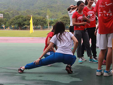 比赛开始前30分钟,各参赛队伍由队长带领到北田径场100米起点处签到,清点人数。每队参赛队伍选手协助工作人员贴上号码标签。然后,参赛选手们进行充分的热身活动,准备起跑。