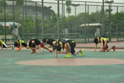 为了备战大运会,男篮每周安排四次训练,下午五点队员们都会集合到南校区篮球场进行常规训练,每次训练持续两个半小时左右。据教练介绍,队员中有大四学生由于仍在实习期,因此未能参加训练,但会随队出征大运会。还有一些北校区的队员,需要在下课后立马赶到南校区参加球队训练。球队训练由四十分钟的热身开始,除了常规的跑步和伸展运动等,队员还需进行快速运球等热身项目。