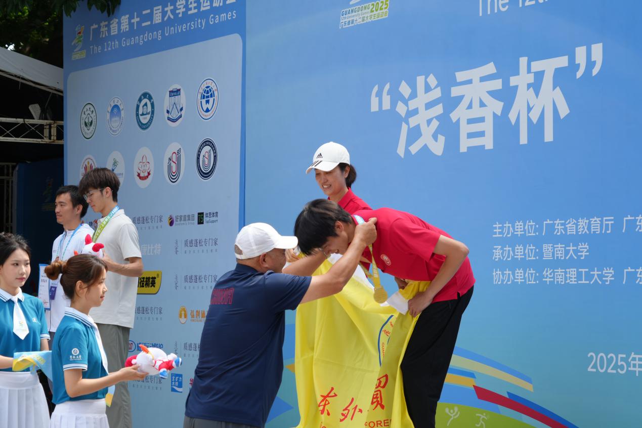 转载自宣传部 助跑、腾空、换腿、落地,沙尘腾起又落下。广东省第十二届大学生运动会“浅香杯”田径比赛三级跳赛场上,电子显示屏上的数字14.17米如平地惊雷,让蔡汝轩得以戴着金牌站上三年间屡次擦身而过的领奖台。