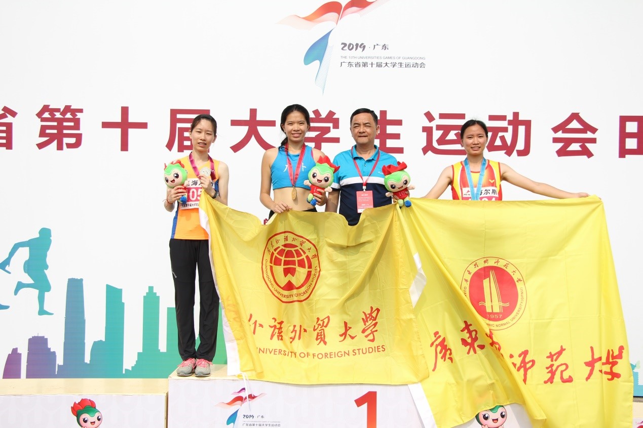 伟德国际victor1946学子张莉(左二)在女子三级跳远项目夺金