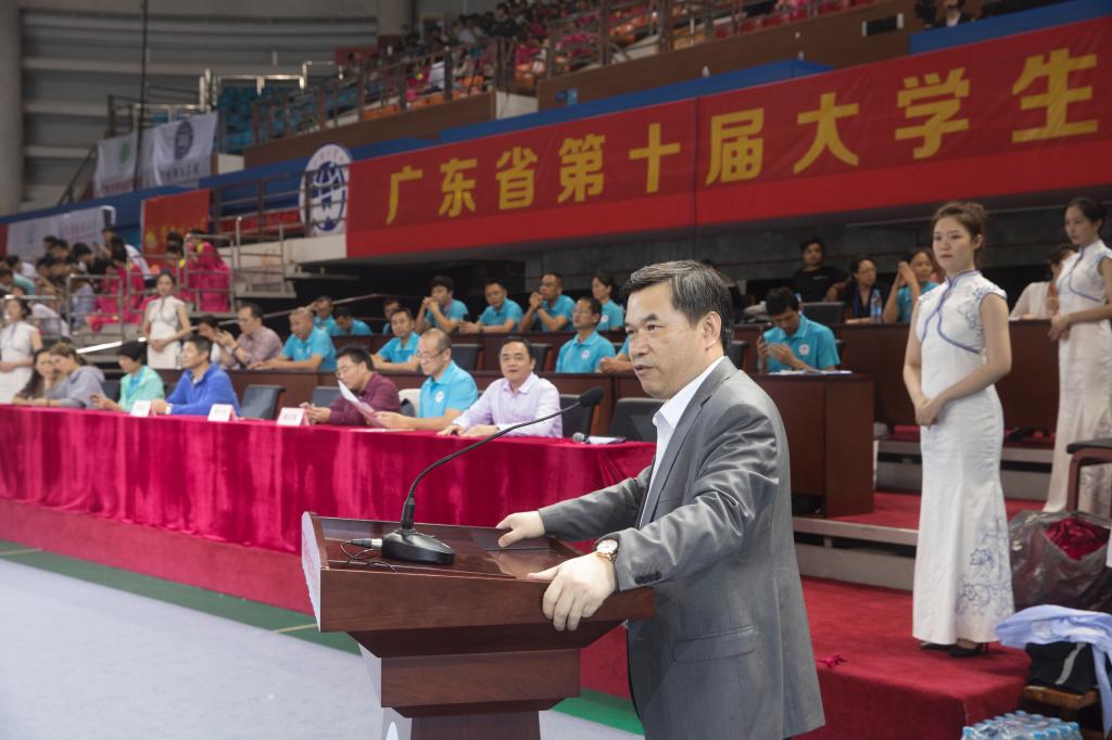 本网讯 5月9日晚7点,广东省第十届大学生运动会伟德国际victor1946代表团出征仪式于伟德国际victor1946南校区体育馆举行。伟德国际victor1946代表团团长、副校长焦方太,代表团副团长、学生处处长谢应东,代表团副团长、伟德国际victor1946主任李旭武和学校部分职能部门领导,各运动队领队、教练员、运动员出席了本次大会。大会由伟德国际victor1946伟德国际victor1946副主任黄德沂主持。
