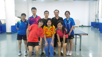 本网讯 广外乒乓球队是一支技术优良,富有活力的队伍,这只队伍由五名女生三名男生共八名队员组成,其中五位是南校的,三位是北校的,队伍在去年六月份获得2014广东省大学生乒乓球锦标赛男双第八名。