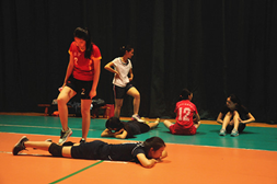 为了大运会,女排队安排了三个时期的练习。前期以提高身体素质为主要目的,多进行跑步等运动来练体能。中期是串联练习,把各种技术性的动作串联起来。后期是阵容的配备和磨合,培养队员们的默契与合作,为比赛作准备。现在已经是处于后期的训练当中了。