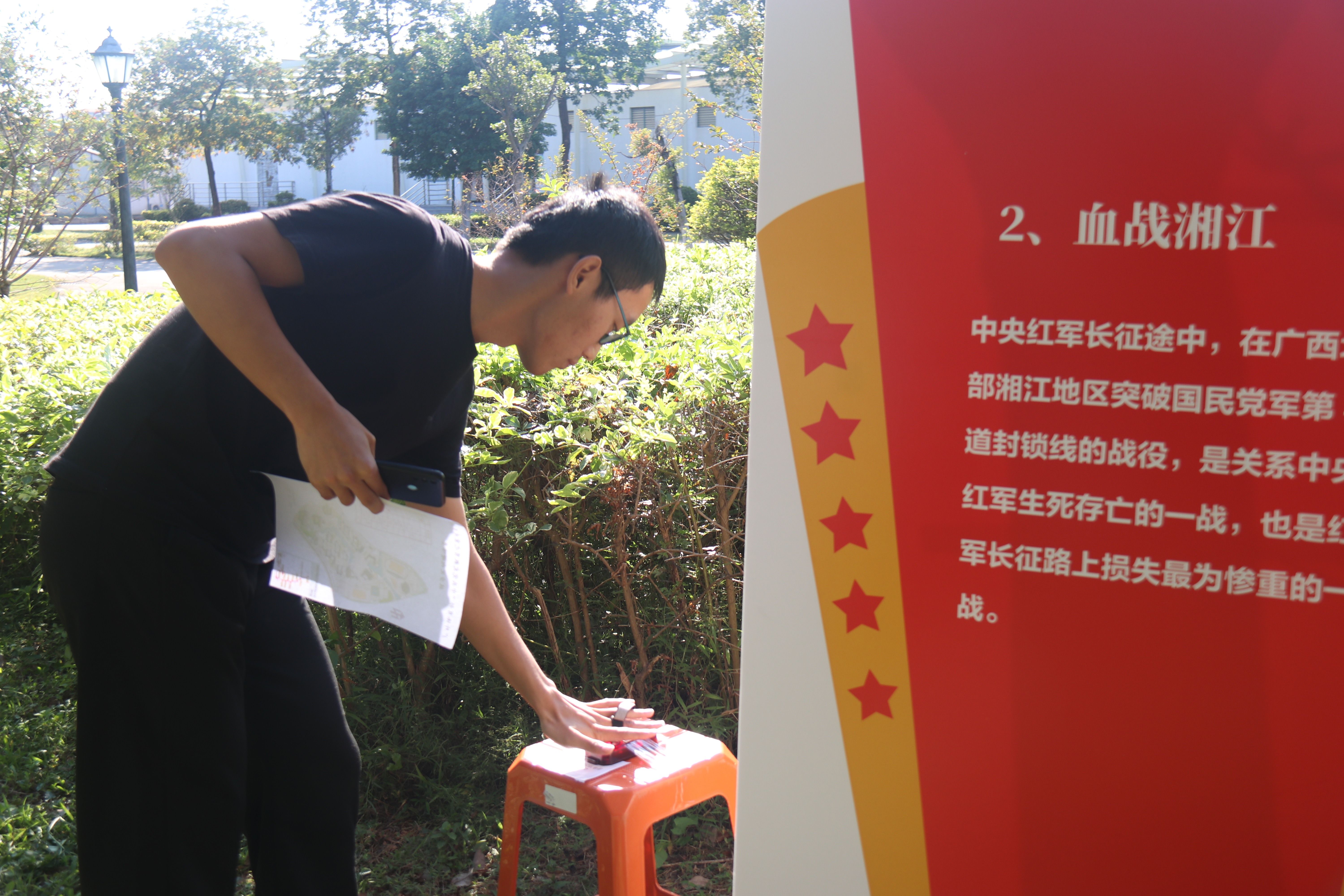本次活动选取“红军万里长征”的13个中共党史重要节点作为趣味赛打卡目标点,抽选2个重要节点附加党史学习教育和体育运动有关挑战任务,如“宣传画朗读、入党誓词朗读、唱三句以上的红歌、跳绳50个”等,每个节点设置历史事件的主要内容宣传版画,参赛者通过每个节点时都能够学习到历史节点的有关知识。
