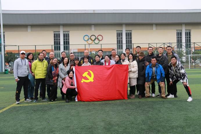 伟德国际victor1946党总支部全体成员在体育馆前合影