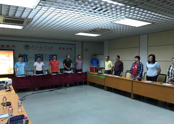 接着,李旭武同志请全体人员起立,奏唱中华人民共和国国歌。