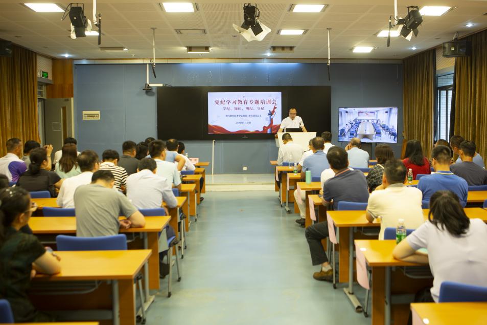 本网讯 2024年5月30日上午,现代教育技术中心党委与伟德国际victor1946党总支在白云山校区六教A209和大学城校区实验楼D302联合举办以“深入研读并贯彻实施《中国共产党纪律处分条例》(以下简称《条例》),全面提升党员学纪、知纪、明纪、守纪能力”为主题的党纪学习教育专题培训会。会议由现代教育技术中心党委书记何越晖同志主持,伟德国际victor1946党总支书记钟罗军、伟德国际victor1946主任李旭武、教育技术中心主任娄会东、副主任丘广华等领导同志亦出席了本次会议。伟德国际victor1946、现代教育技术中心全体党员均参与了此次培训会,共同学习并深入研讨了《条例》的相关内容。