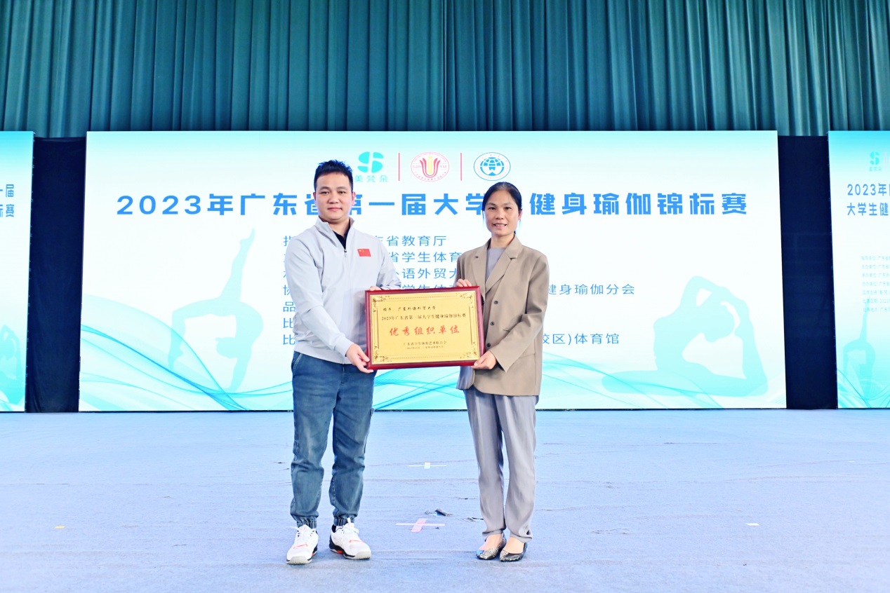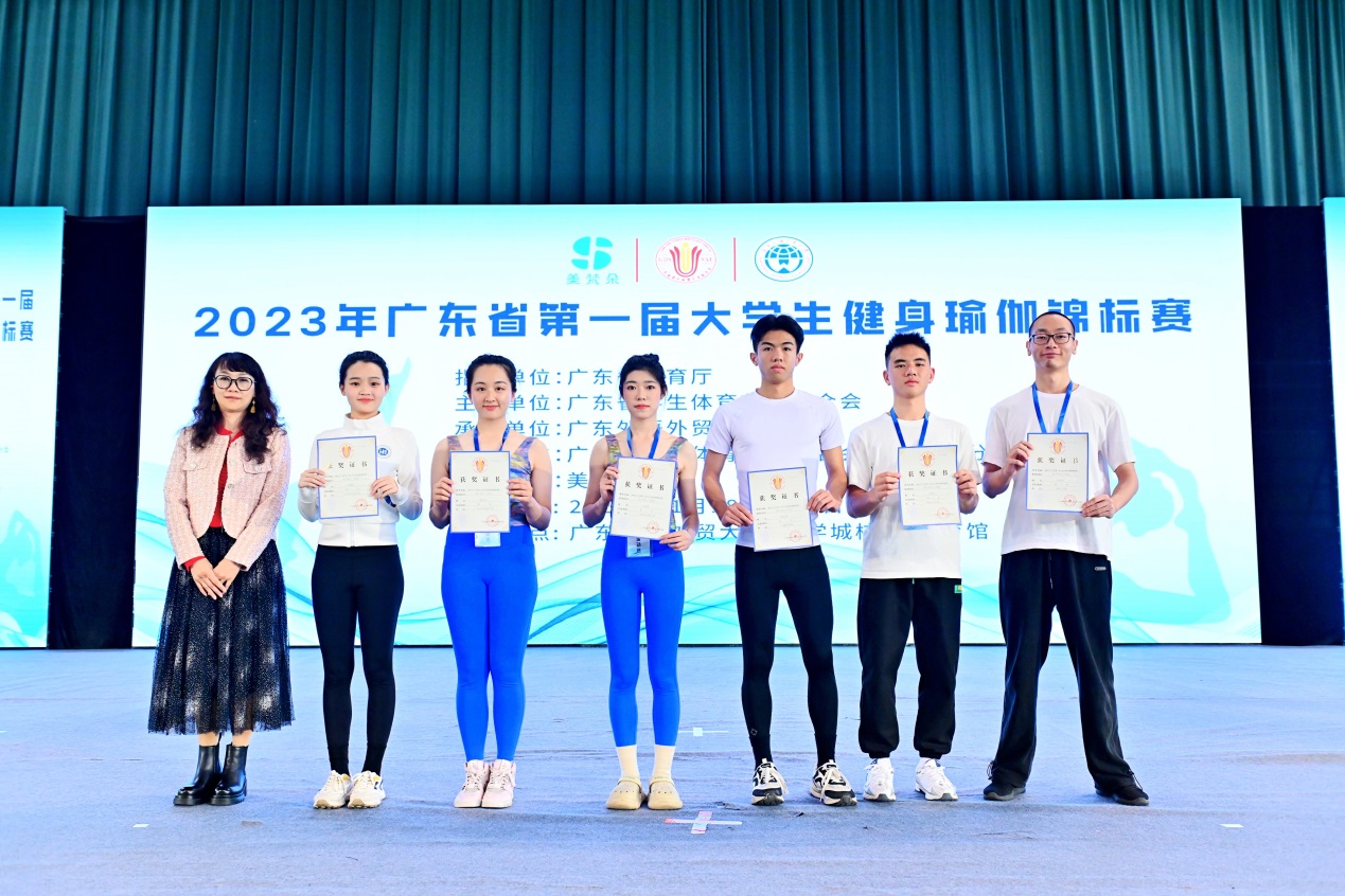 广东省学生体育艺术联合会秘书长林子平莅临参加开幕式仪式,广东省学生体育艺术联合会常务副会长郭鼎文亲临比赛现场。颁奖仪式由广东省学生体育艺术联合会副会长、伟德国际victor1946伟德国际victor1946主任李旭武、党总支书记钟罗军、广东省学生体育艺术联合会竞赛部部长祝健涛、美梵朵瑜伽服品牌总监麦丽珊、广东技术师范大学体育学院党委书记陈少宇、星海音乐学院体育教研室主任陈静霜,裁判长李群凤等分别为获奖运动员、学校、优秀组织单位分别颁奖。