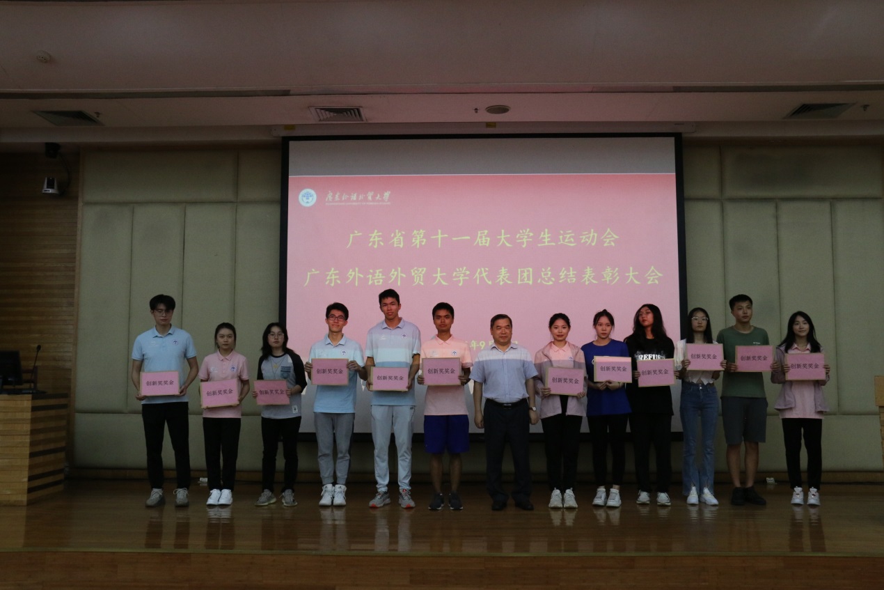 随后,伟德国际victor1946副校长焦方太为广东省第十一届大学生运动会广外代表团获得大运会金牌的运动员、广外代表团优秀教练员颁发创新奖奖金。