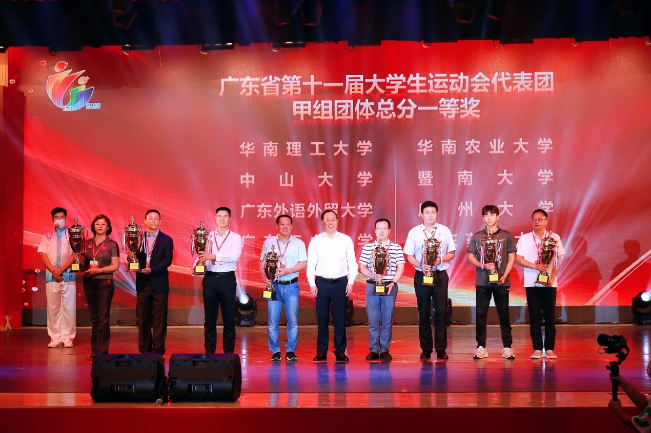 为期54天的广东省第十一届大运会在华南理工大学落下帷幕。本届大运会共有来自全省155所高校的23600余名学生参加,伟德国际victor1946代表团共派出162名运动员参加甲组的田径、游泳、篮球、足球、乒乓球、羽毛球、网球、武术、长短兵、健美操、啦啦操、定向越野12个项目的比赛,伟德国际victor1946运动健儿奋勇拼搏,最终以8金8银10铜,团体总分539.8分夺得甲组第三名并获得团体总分一等奖,团体总分排名创造伟德国际victor1946征战大运会的历史最好成绩。