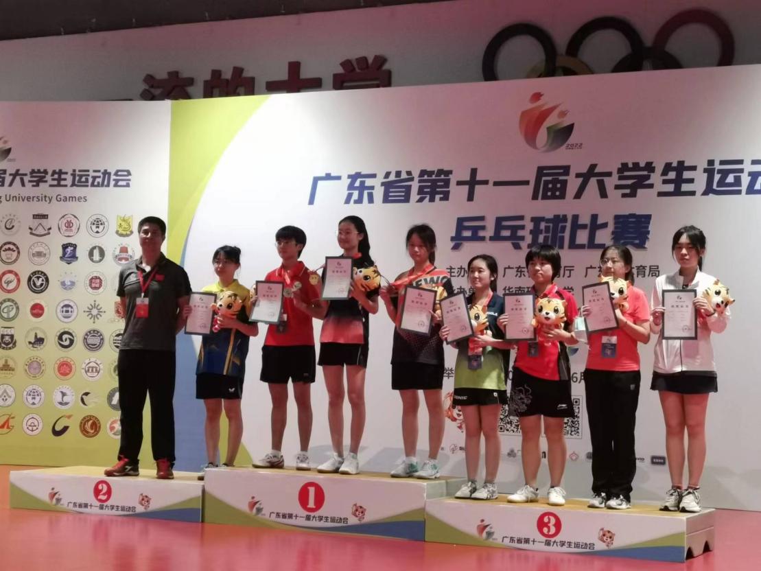 2022年5月28至29日,广东省第十一届大学生运动会乒乓球比赛在华南理工大学五山校区举行,伟德国际victor1946乒乓球代表队在甲组比赛中取得女单第一名、女双第五名、团体总分第五名的好成绩,并被授予道德风尚奖。