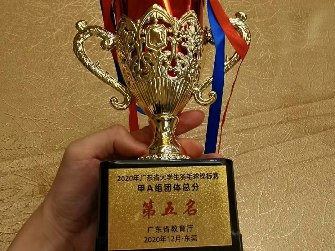11月27日,由广东省教育厅主办,广东省学生体育艺术联合会羽毛球协会协办的“2020年广东省大学生羽毛球锦标赛”在广东东莞市世纪城羽毛球俱乐部举行。经过四天的激烈角逐,伟德国际victor1946羽毛球队在领队何伟儒及教练员朱健文、朱性民的带领下,获得了甲A组团体总分第五名的成绩,其中女单包揽冠亚军,男双获第八名。