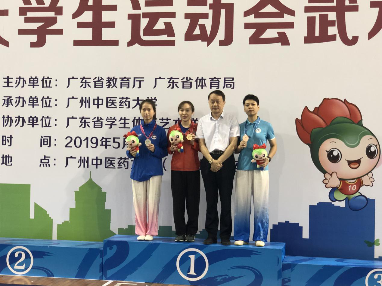 武术项目的比拼在广州中医药大学大学城校区拉开帷幕。面对劲敌,伟德国际victor1946运动员临危不惧,发挥稳定,在首个比赛日就收获了一金一铜。陈绮楠在女子甲组自选剑项目中从容不迫,凭借0.32的分值与第二名拉开差距,以8.69分获得第一名。李来英则在女子甲组自选棍项目中以8.22的成绩获得第三名。