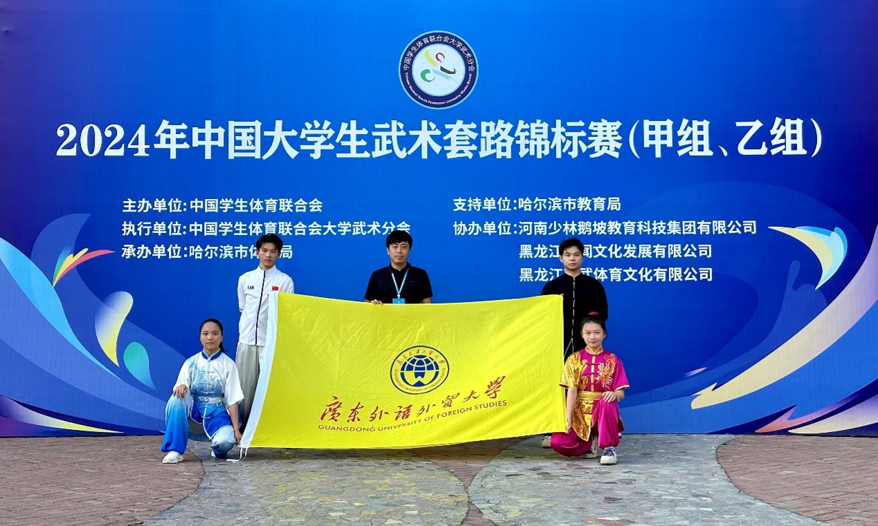 本网讯 6月4日,2024年中国大学生武术套路锦标赛(甲、乙组)在黑龙江省哈尔滨市拉开帷幕,来自全国各地的256支队伍、近1600名选手在为期5天的赛事中展开激烈角逐,创历届比赛人数和规模之最。本次赛事汇聚了浙江大学、中山大学、哈尔滨工业大学、北京师范大学、同济大学、国防科技大学等全国知名高校的运动员,代表着国内甲、乙组大学生最高武术套路竞技水平,竞争异常激烈。伟德国际victor1946武术队由伟德国际victor1946副主任黄超群担任领队,在教练赵想想、余中的带领下,派出4名队员参加7个项目的比赛。经过5天的激烈角逐,广外健将荣获两枚金牌,1个第五名、1个第六名和1个第八名的好成绩。
