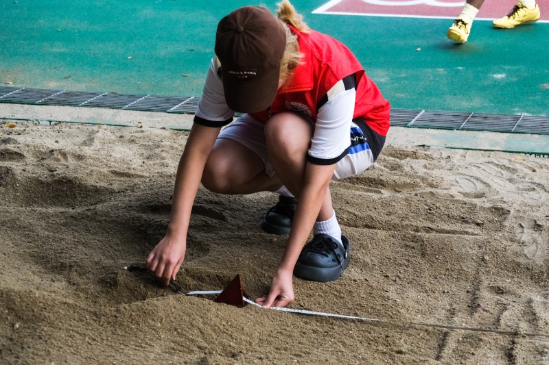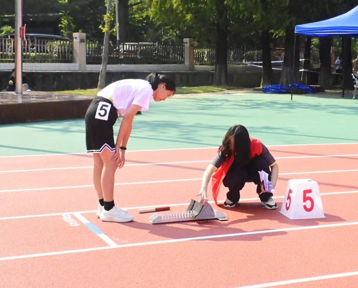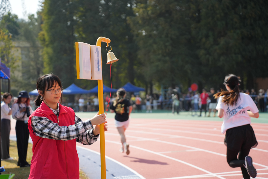 掌声不止属于参赛者,还属于操场上那抹独特的“红”——穿着红色马甲的志愿者也同样奔跑在运动场上,维持着比赛秩序。径赛的志愿者们在跑道上细心确认着选手们的位置,田赛的志愿者们插起小旗子,用卷尺仔细测量运动员们的成绩。为比赛的顺利进行保驾护航。作为径赛发令组的志愿者,来自西语学院的徐昕岚,在做好本职工作的同时,还会在赛前为每位运动员都送上自己的暖心祝福与鼓励。当运动员们迈过终点线后,她会递过一瓶水为他们祝贺;当有运动员累倒时,徐昕岚会立马奔过去,搀扶他们去休息。谈及此举的原因,徐昕岚有些羞涩,“因为自己曾在过往的比赛中接受过别人的鼓励,现在也想以同样的方式将鼓励传递出去,为运动员加油鼓劲。”
