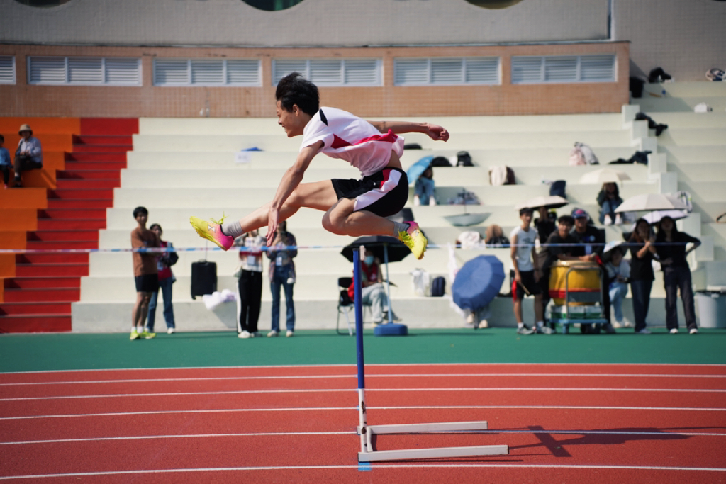 “砰!”枪声一响,在男子110米跨栏的赛场上,运动员们像脱缰野马般冲了出去。其中,第四道的贺政最为亮眼。只见他腾跃而起、轻巧落地,再迅速奔至下一个栏架,以明显优势从一众运动员中脱颖而出,率先迈过终点线。两年前,贺政因为与第一名相差0.2秒而与金牌擦肩而过,一直希望可以追赶上当时第一名的优异成绩。为此,贺政坚持每周投入三天时间训练,尽管不久前因脚踝受伤需要服用止痛药来缓解不适,他仍坚持以饱满的精力参与到校运会的全过程中。功夫不负有心人,贺政用坚韧不拔的毅力和一往无前的勇气,为两年前的遗憾画下圆满的句点。站上领奖台的那刻,贺政心中洋溢着的不仅是夺冠的无限喜悦,更有超越自我的骄傲自豪。