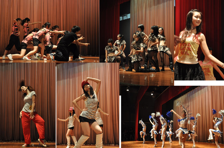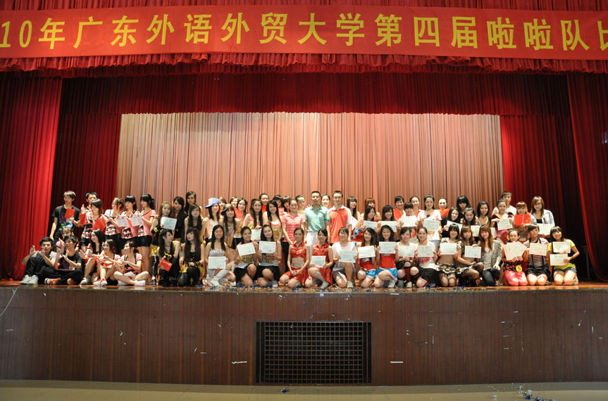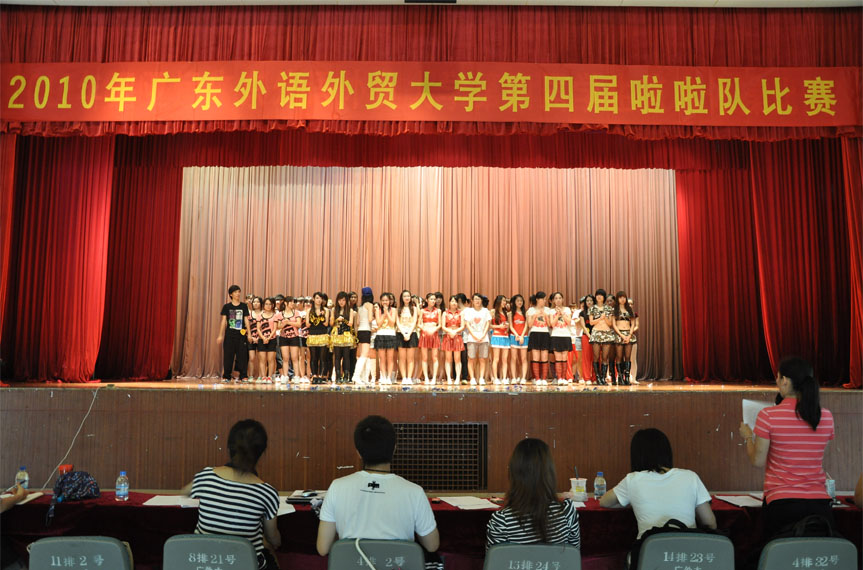 作为首发登场的队伍,身穿迷彩裙装的国魅舞蹈啦啦队将爵士啦啦操的技巧发挥得淋漓尽致。接下来的参与花球项目角逐的队伍带来了精彩的表演,舞者舞动手中的闪亮的啦啦花球,展现了啦啦队的活力与激情。商英学院代表队以其丰富多彩的表现形式以及队形、动作、表情的完美配合征服了观众。流行舞项目的参赛队伍在强烈节奏的摇滚乐中起舞,参赛队伍结合多种舞蹈元素,无论是慢摇还是嘻哈,是爵士还是流行乐,选手们均表现自如,各队都尽全力把最完美的一面展现在评委以及观众面前,男生街舞动作惹得台下观众阵阵欢呼。最后出场的是个人啦啦操的选手,偌大的舞台并没有因为选手独舞而显得空旷,选手们都使出浑身解数,把平常练习的动作都流畅的展现出来,强劲的节拍加上到位的动作,舞者一人也能演绎出啦啦队的激情。来自艺术学院的韩晨把啦啦操与体操巧妙地结合起来,她惊人的身体柔韧度吸引了众人的目光,台下一片惊呼。
