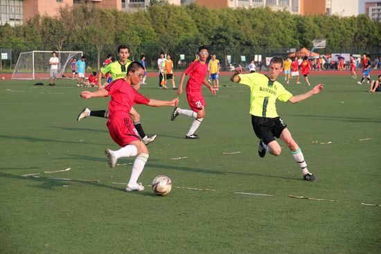 5月24日,2012年“广外杯”足球赛南北校区总决赛在南校区足球场打响。经过50分钟的激战,最终经贸学院以2:1逆转留学生教育学院队,捧起了2012年广外杯冠军奖杯。