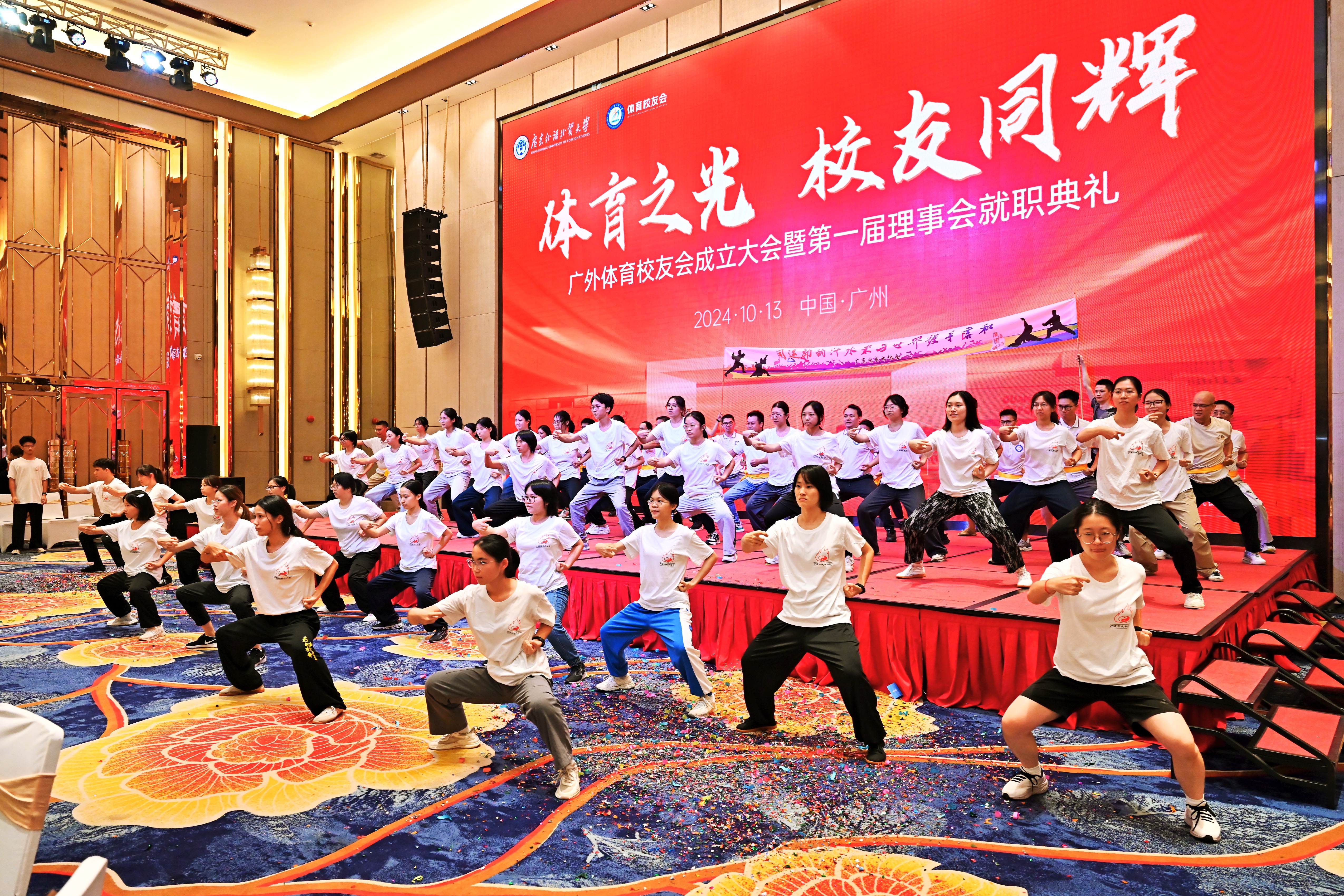 本网讯 10月13日下午,以“体育之光,校友同辉”为主题的伟德国际victor1946体育校友会成立大会暨第一届理事会就职典礼在广外国际学术交流中心隆重举行。校党委书记石佑启,广东省教育厅二级巡视员陈健生,原广州体育学院院长陈子锐,广东省教育厅体卫艺处二级调研员董业权等嘉宾;副校长刘建达、焦方太,校党委常委、党办校办主任、统战部部长谢伟光及机关部处代表,校友分会代表、师生代表和体育校友会校友共300余人参加了盛会。