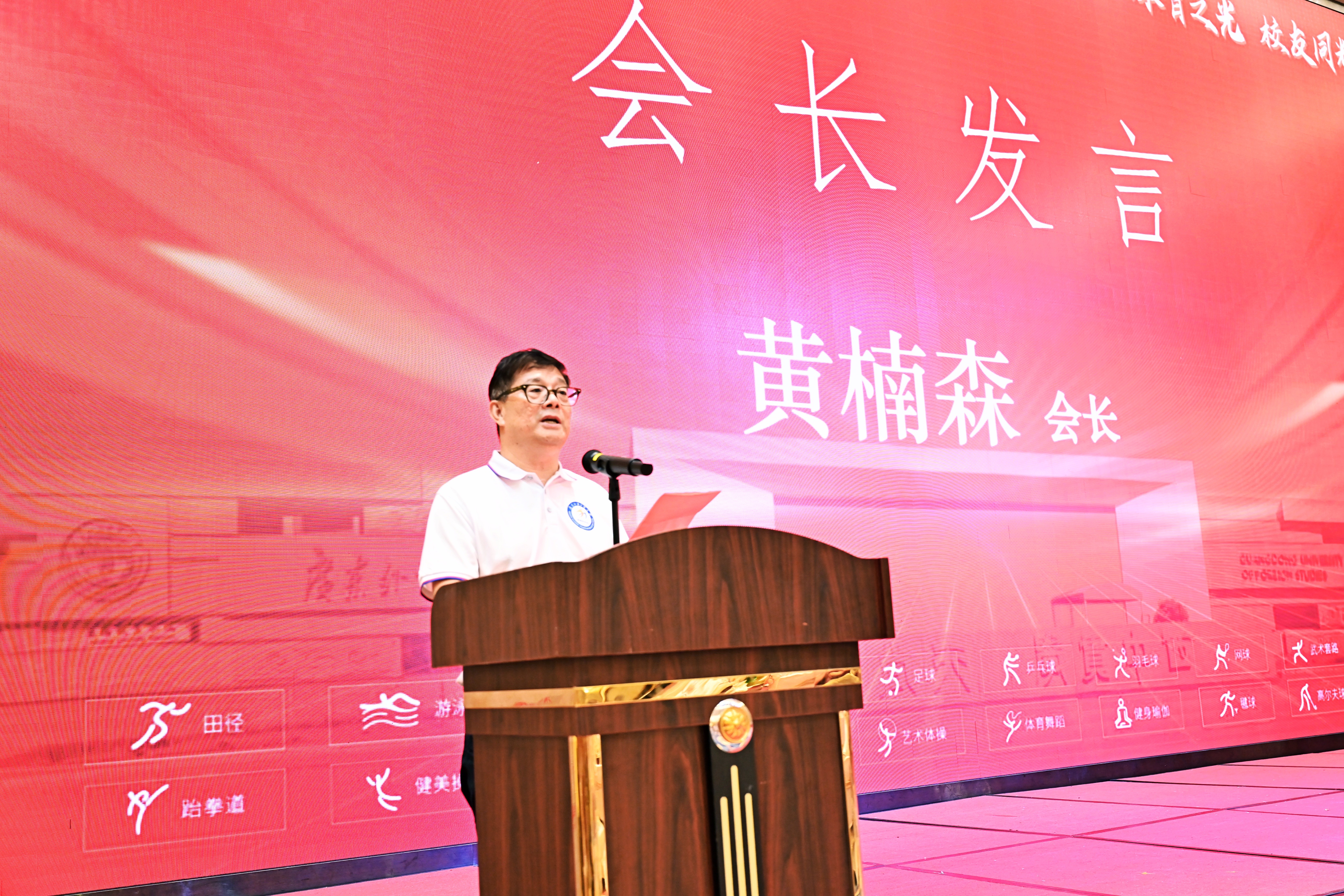 黄楠森会长在致辞中指出,校友会的成立是所有校友共同努力的结晶,也是校友情感联结、共谋发展的重要里程碑。他表示作为体育校友会的牵头人,将尽自己的绵薄之力推动体育校友会的发展,让它成为我们校友之间沟通的桥梁,成为我们与母校联系的纽带、传承体育精神、激励更多广外人追求卓越、勇于拼搏的平台,为培养更多优秀的体育人才添砖加瓦。